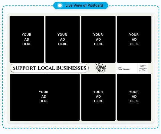 Advertising businesses can join our monthly postcard mailer to reach local residents with targeted offers. Spots are limited to ensure exclusivity, so sign up early to reserve your spot.